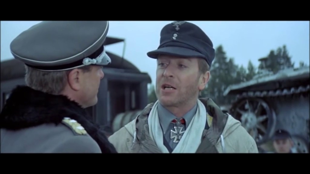 Colonel Pitts, the Rangers’ inexperienced and rash commander, launches a poorly-planned assault on the church that results in heavy American casualties. Pitts is later killed by the village’s Abwehr agent. It’s left to Pitts’ deputy commander to reorganise and launch a second, successful attack. To delay the Americans, Steiner’s men sacrifice themselves to give Devlin, Steiner and his wounded second-in-command time to escape through a hidden passage. A local girl, who has fallen for the charming Devlin, helps in the escape. At the waiting E-Boat, Steiner puts his wounded second-in-command on board but says he is staying behind to kill Churchill.