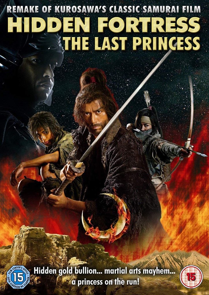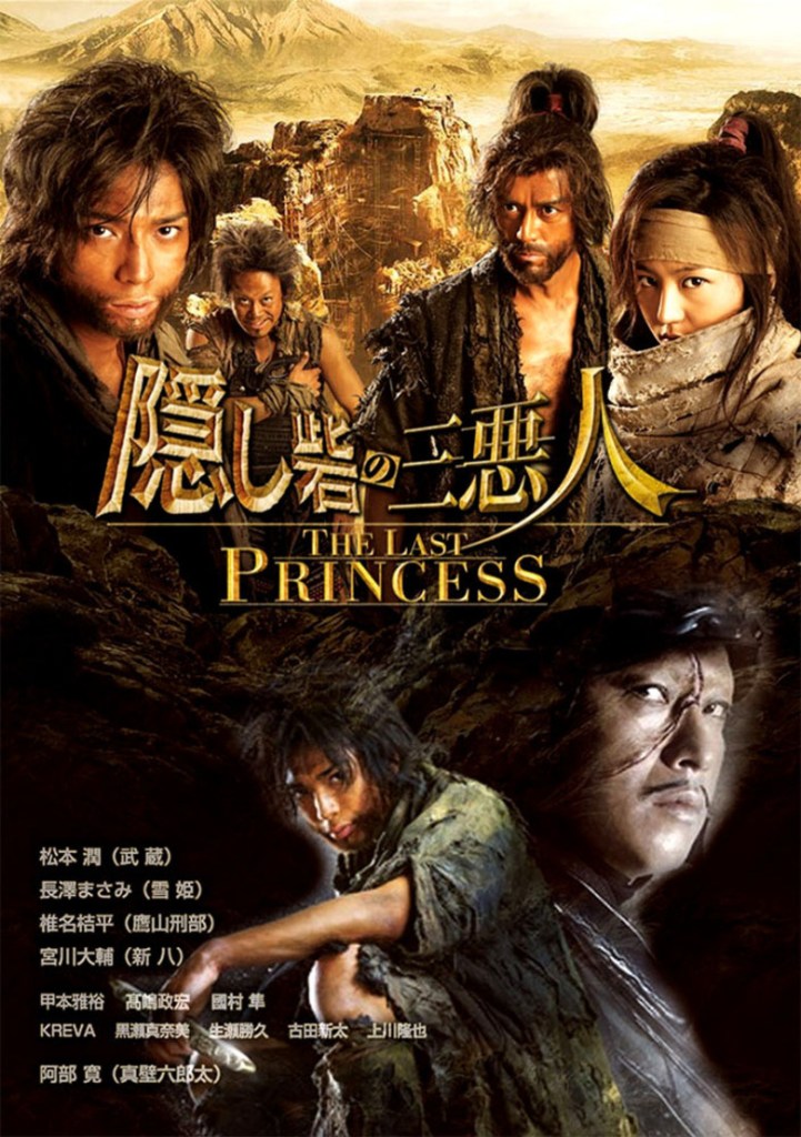 Hidden Fortress: The Last Princess (Japanese: 隠し砦の三悪人 THE LAST PRINCESSザ ラスト プリンセス, Hepburn: Kakushitoride no Sanakunin: Za Rasuto Purinsesu, lit.”The three villains of the hidden fortress: The last princess”) is a 2008 Japanese film directed by Shinji Higuchi.