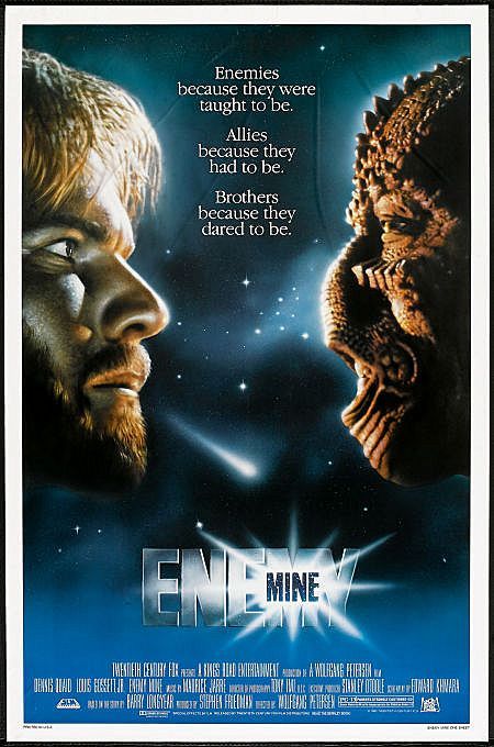 Enemy Mine is a 1985 West German-American dark science fiction drama film directed by Wolfgang Petersen and written by Edward Khmara, based on Barry B. Longyear’s novella of the same name.