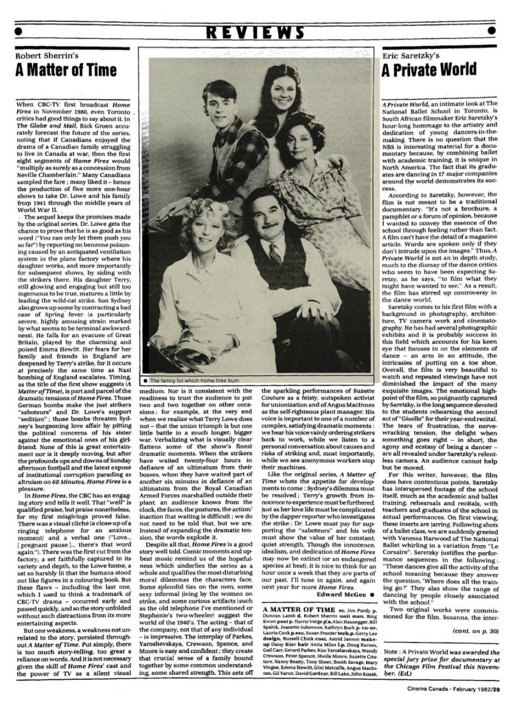 It was a family saga set in Toronto during World War II, and took its name from the expression “keep the home fires burning”.