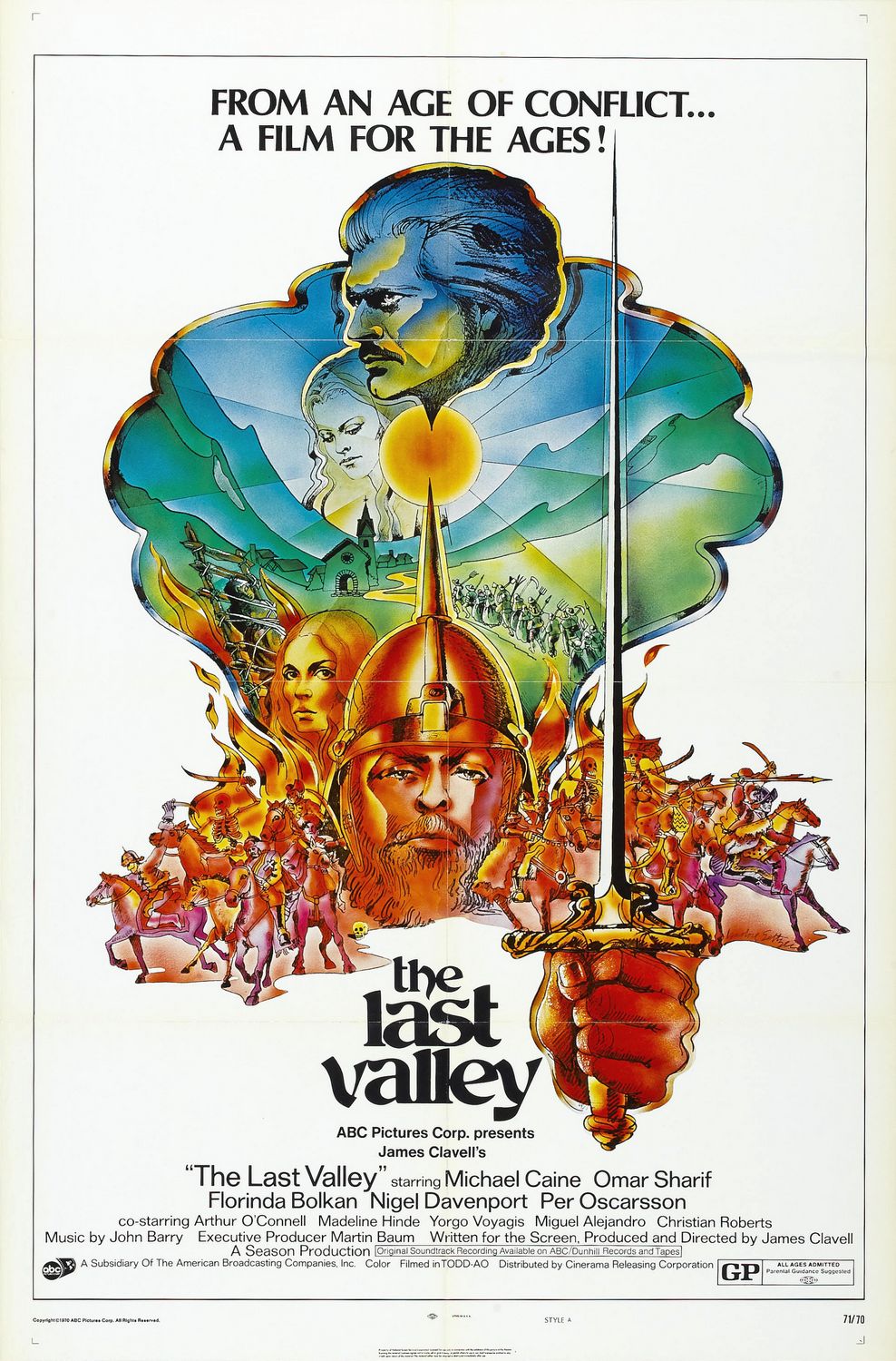 The Last Valley is a 1971 film directed by James Clavell, a historical drama set during the Thirty Years’ War (1618–1648). While war ravages southern Germany, a mercenary leader (Michael Caine) and a teacher (Omar Sharif) stumble upon a valley untouched by the war.