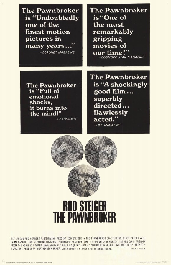 The Pawnbroker is a 1964 American drama film directed by Sidney Lumet, starring Rod Steiger, Geraldine Fitzgerald, Brock Peters and Jaime Sánchez.