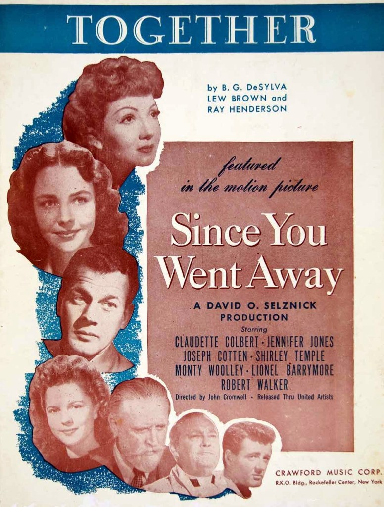 Since You Went Away is a 1944 American epic drama film directed by John Cromwell for Selznick International Pictures and distributed by United Artists. It is an epic about the US home front during World War II that was adapted and produced by David O. Selznick from the 1943 novel Since You Went Away: Letters to a Soldier from His Wife by Margaret Buell Wilder. The music score was by Max Steiner, and the cinematography by Stanley Cortez, Lee Garmes, George Barnes (uncredited), and Robert Bruce (uncredited).